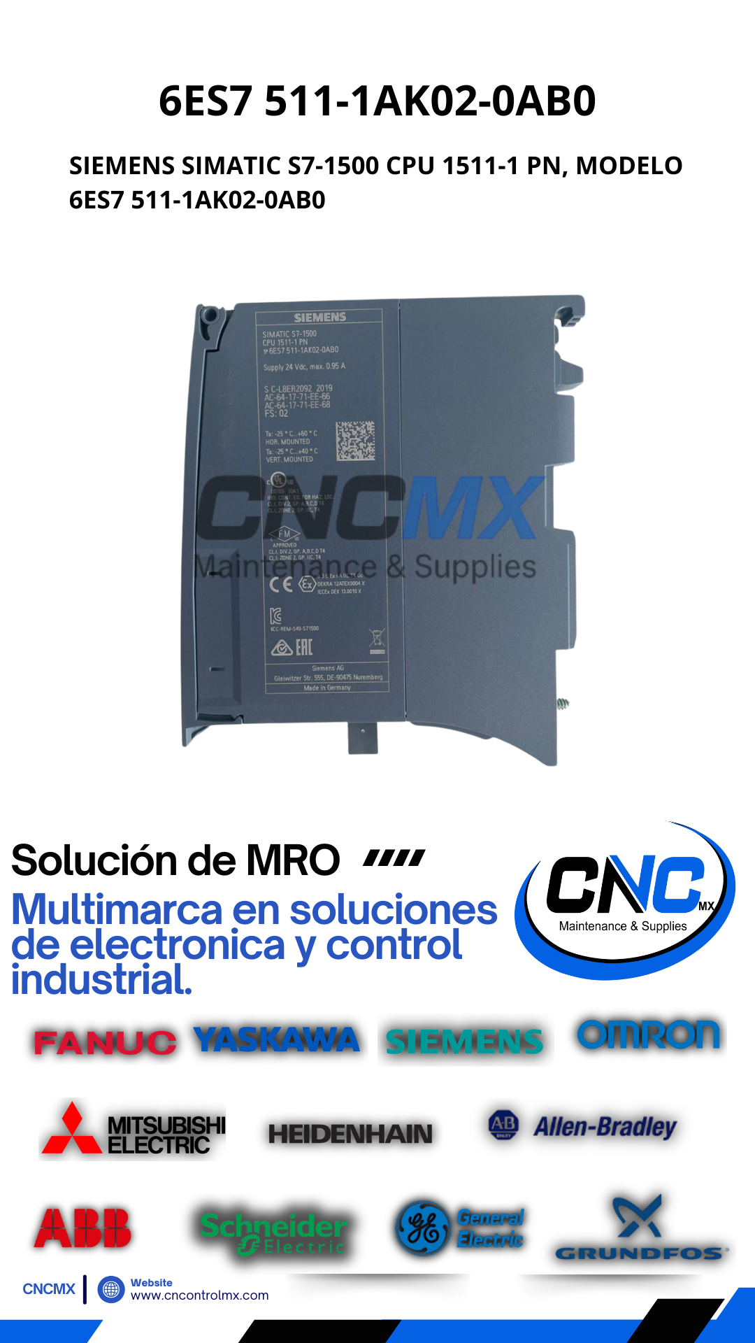 SIEMENS SIMATIC S7-1500 CPU 1511-1 PN, MODELO 6ES7 511-1AK02-0AB0