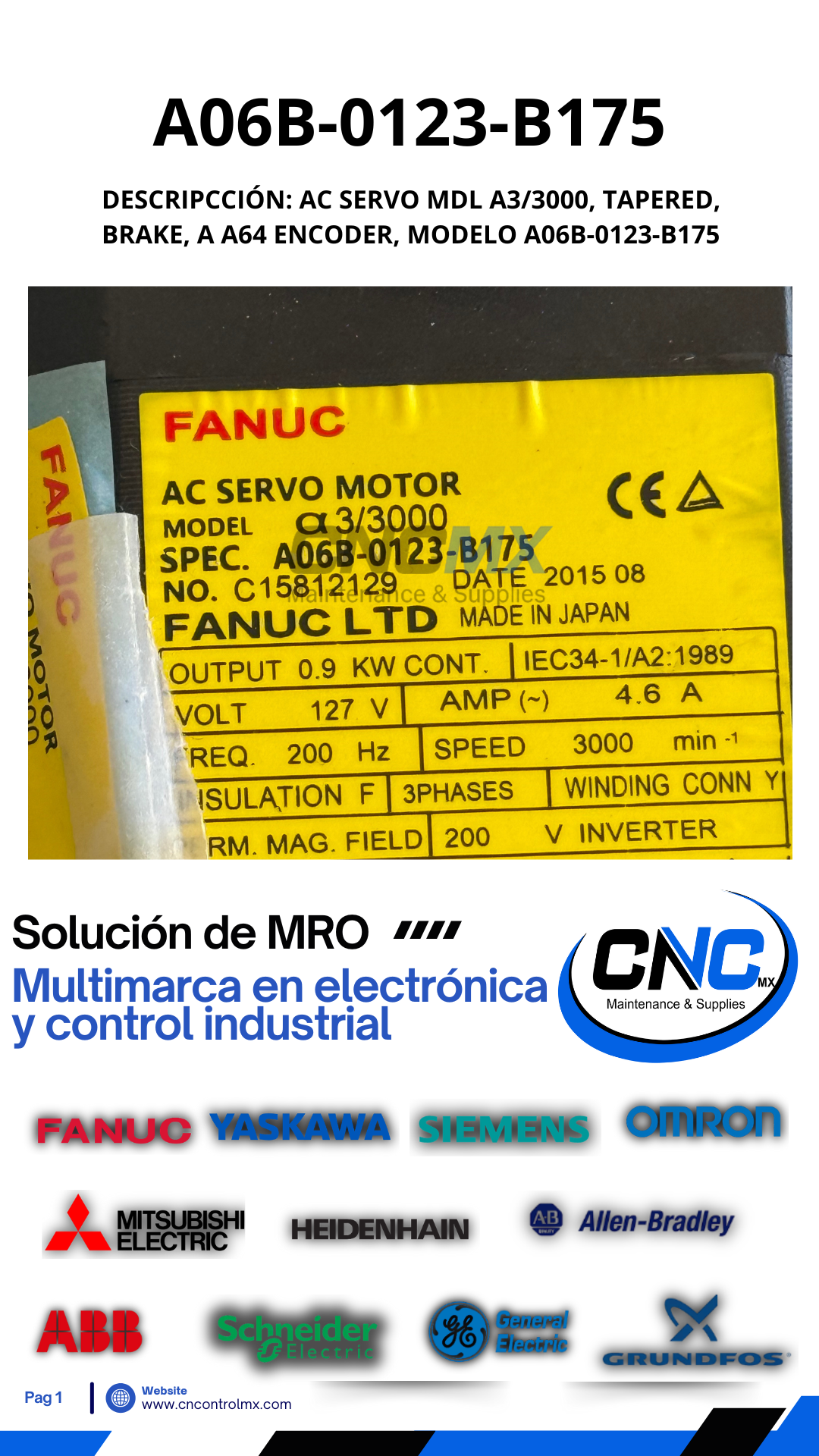 AC SERVO MDL A3/3000, TAPERED, BRAKE, A A64 ENCODER, MODELO A06B-0123-B175