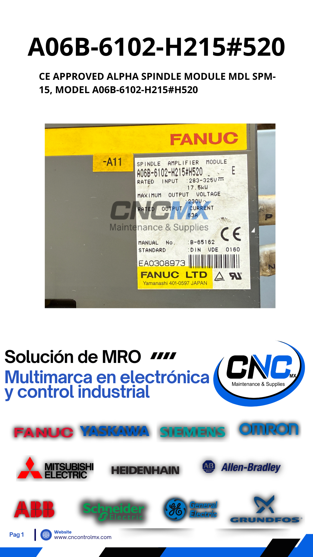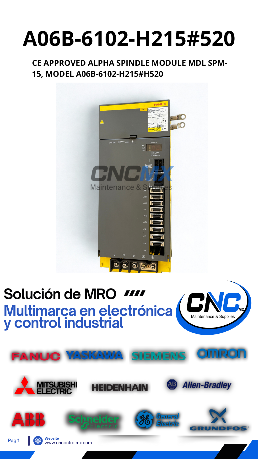 CE APPROVED ALPHA SPINDLE MODULE MDL SPM-15, MODEL A06B-6102-H215#H520