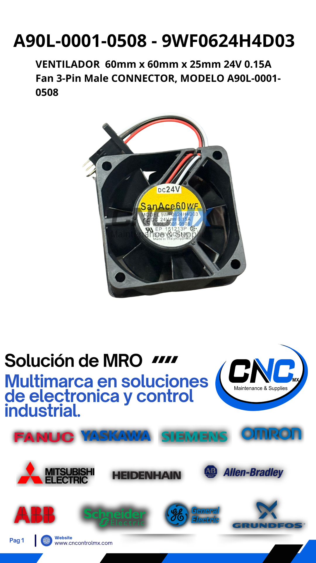 VENTILADOR 60mm x 60mm x 25mm 24V 0.15A Fan 3-Pin Male CONNECTOR, MODELO A90L-0001-0508