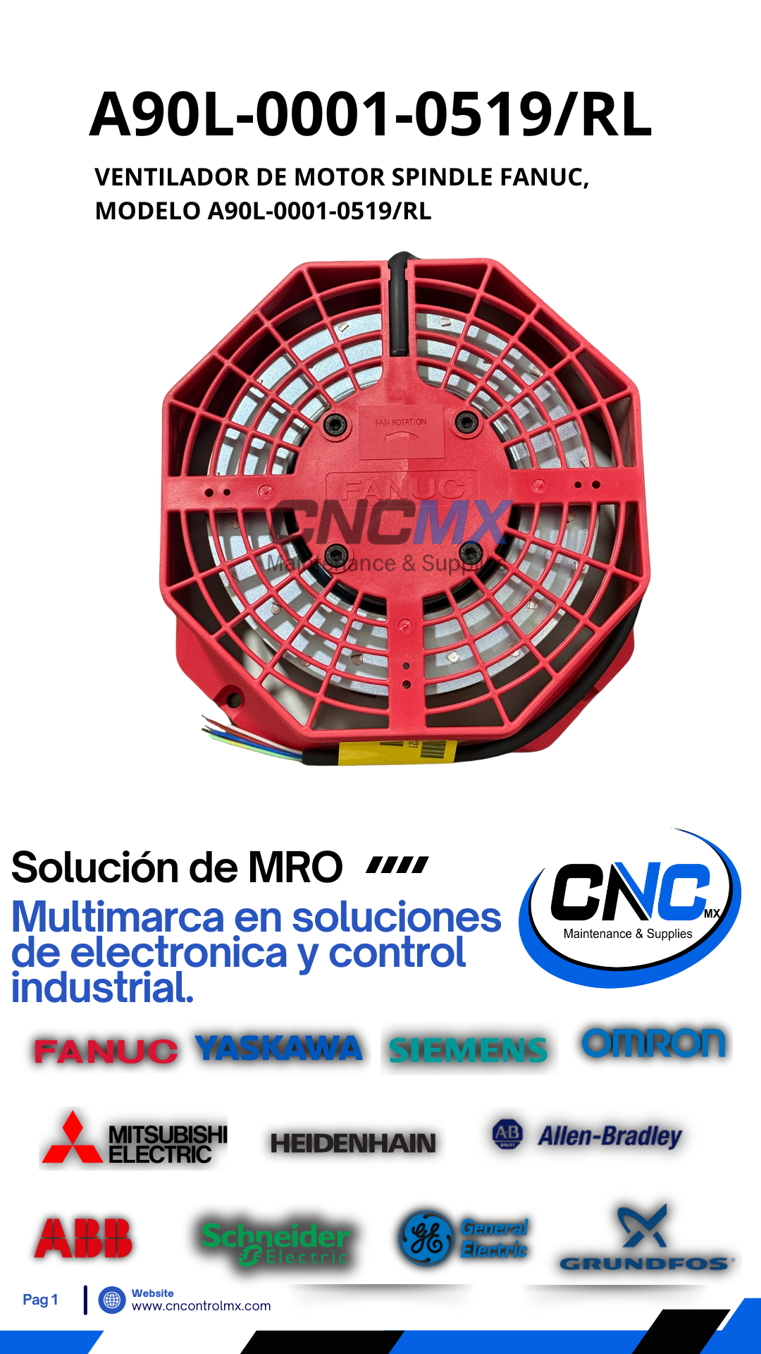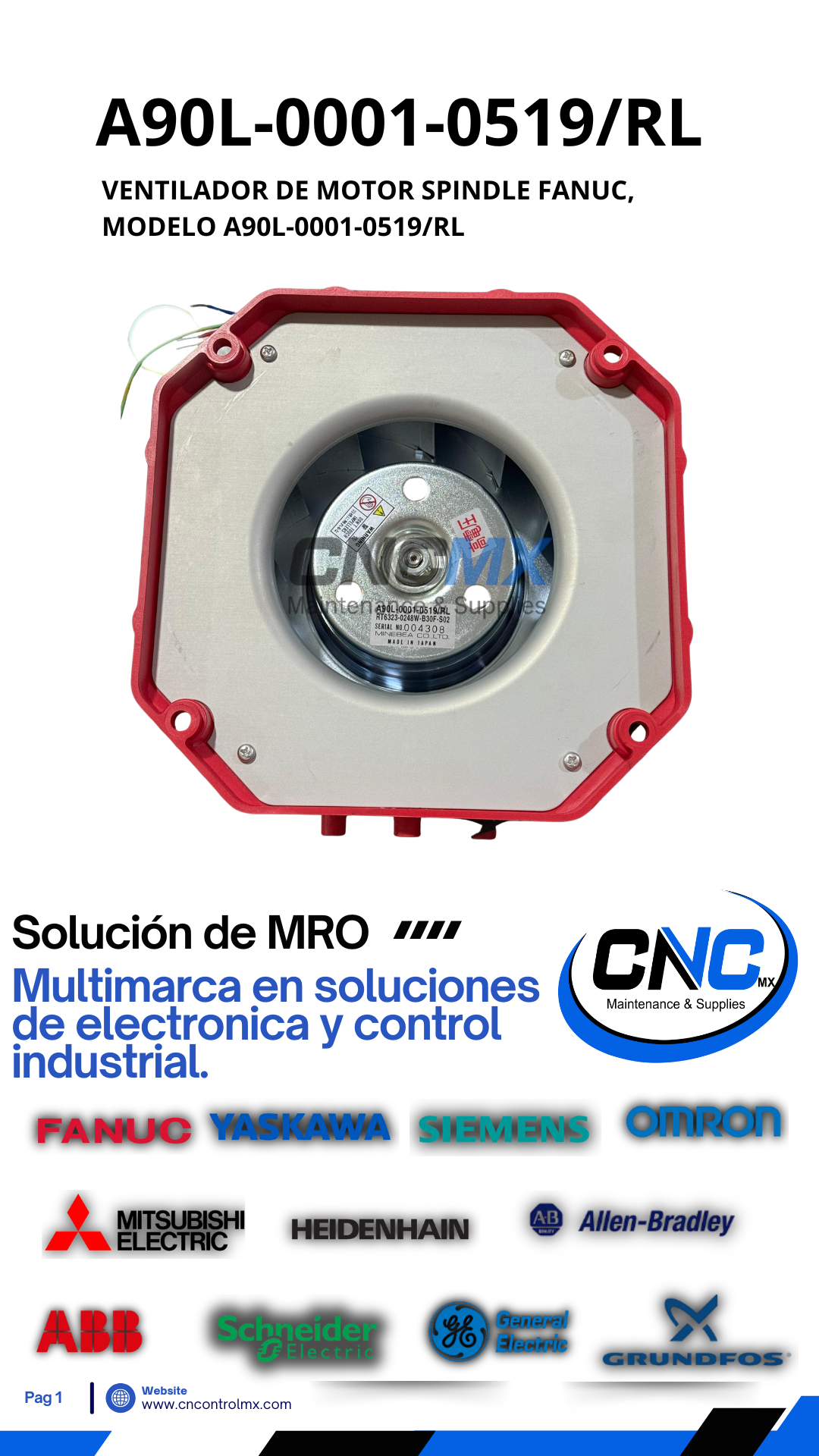 VENTILADOR DE MOTOR SPINDLE FANUC, MODELO A90L-0001-0519/RL