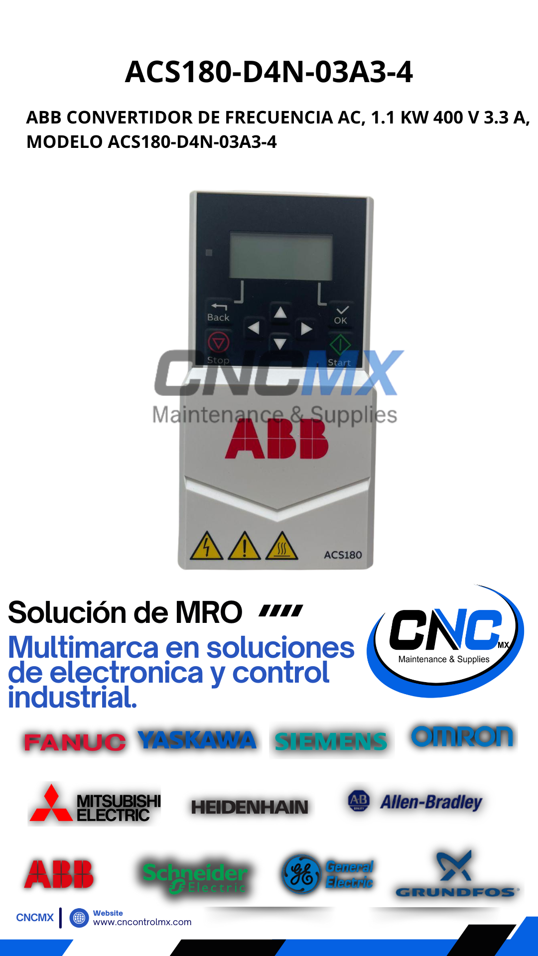 ABB CONVERTIDOR DE FRECUENCIA AC, 1.1 KW 400 V 3.3 A, MODELO ACS180-D4N-03A3-4