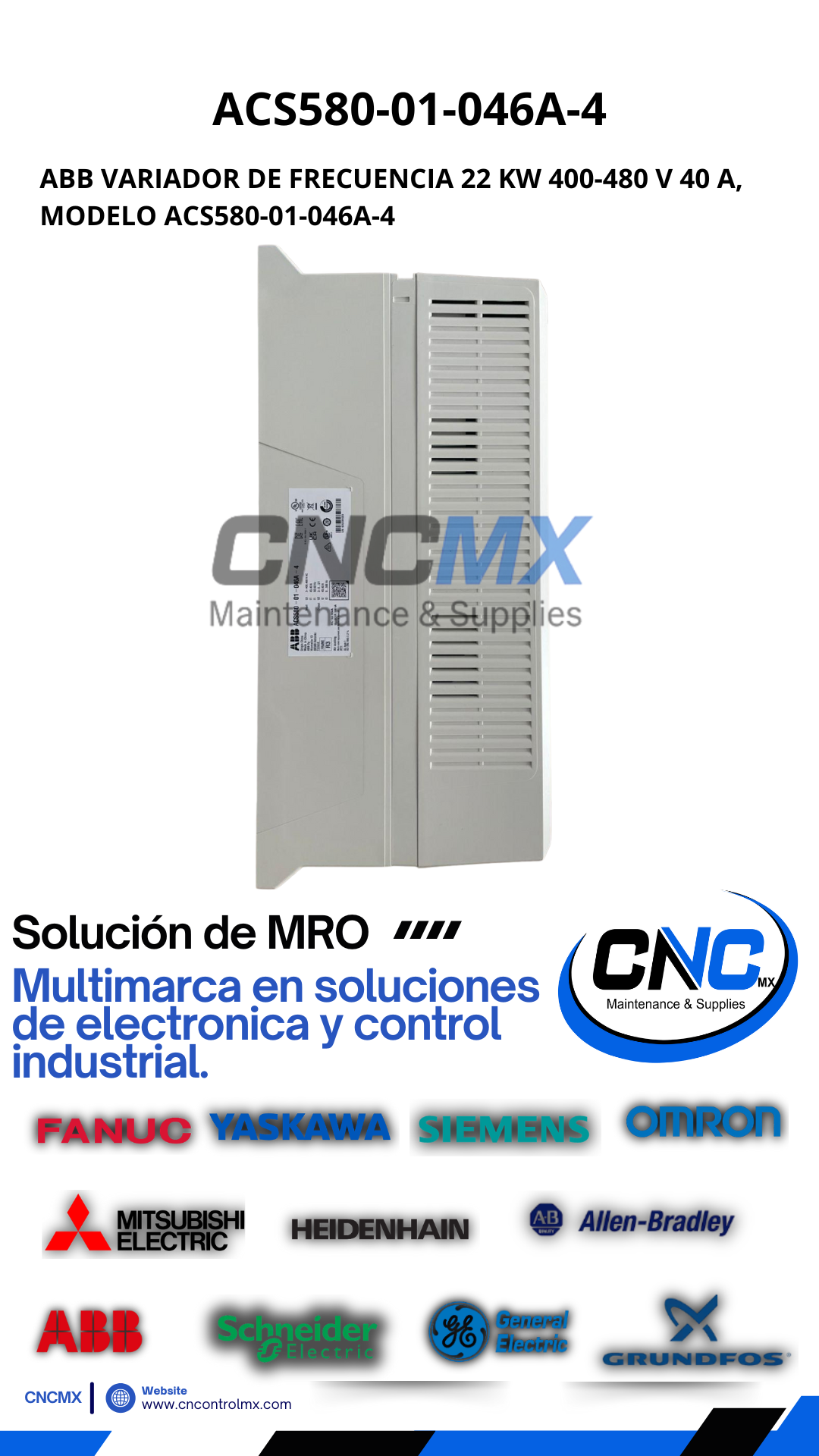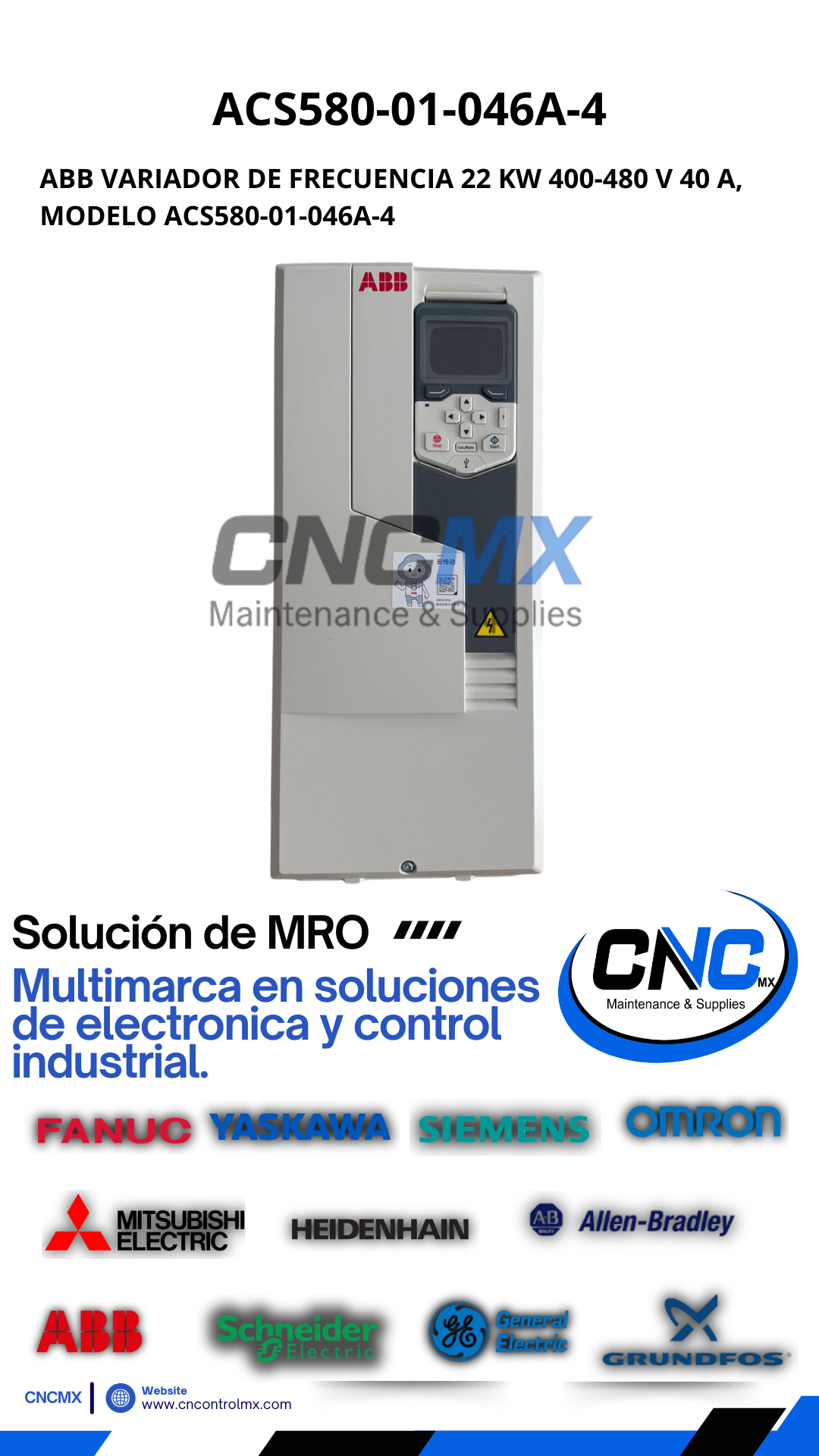 ABB VARIADOR DE FRECUENCIA 22 KW 400-480 V 40 A, MODELO ACS580-01-046A-4
