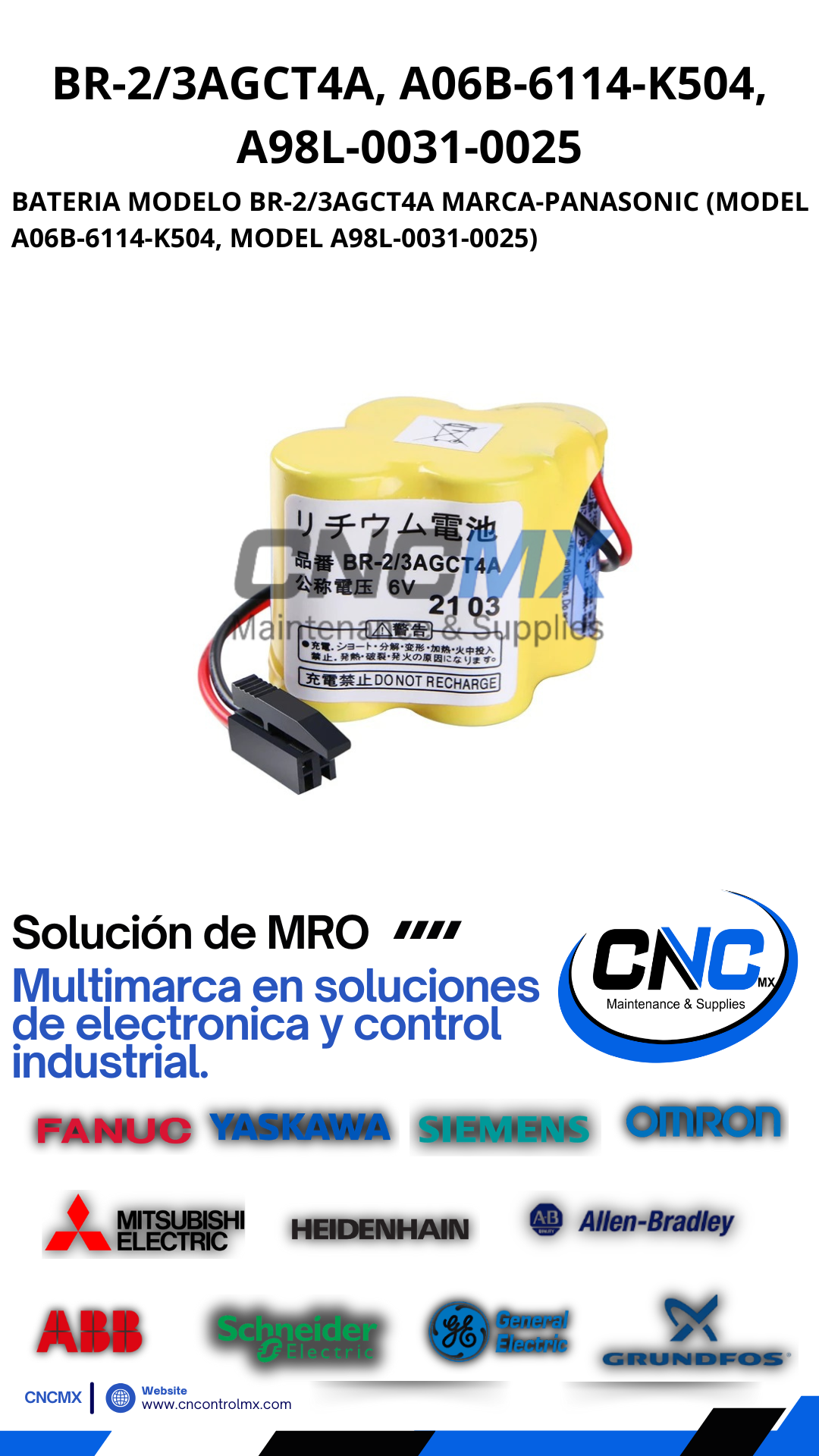 BATERIA MODELO BR-2/3AGCT4A MARCA-PANASONIC (MODEL A06B-6114-K504, MODEL A98L-0031-0025)