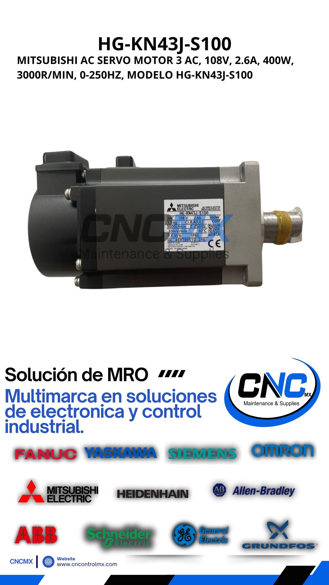 MITSUBISHI AC SERVO MOTOR 3 AC, 108V, 2.6A, 400W, 3000R/MIN, 0-250HZ, MODELO HG-KN43J-S100