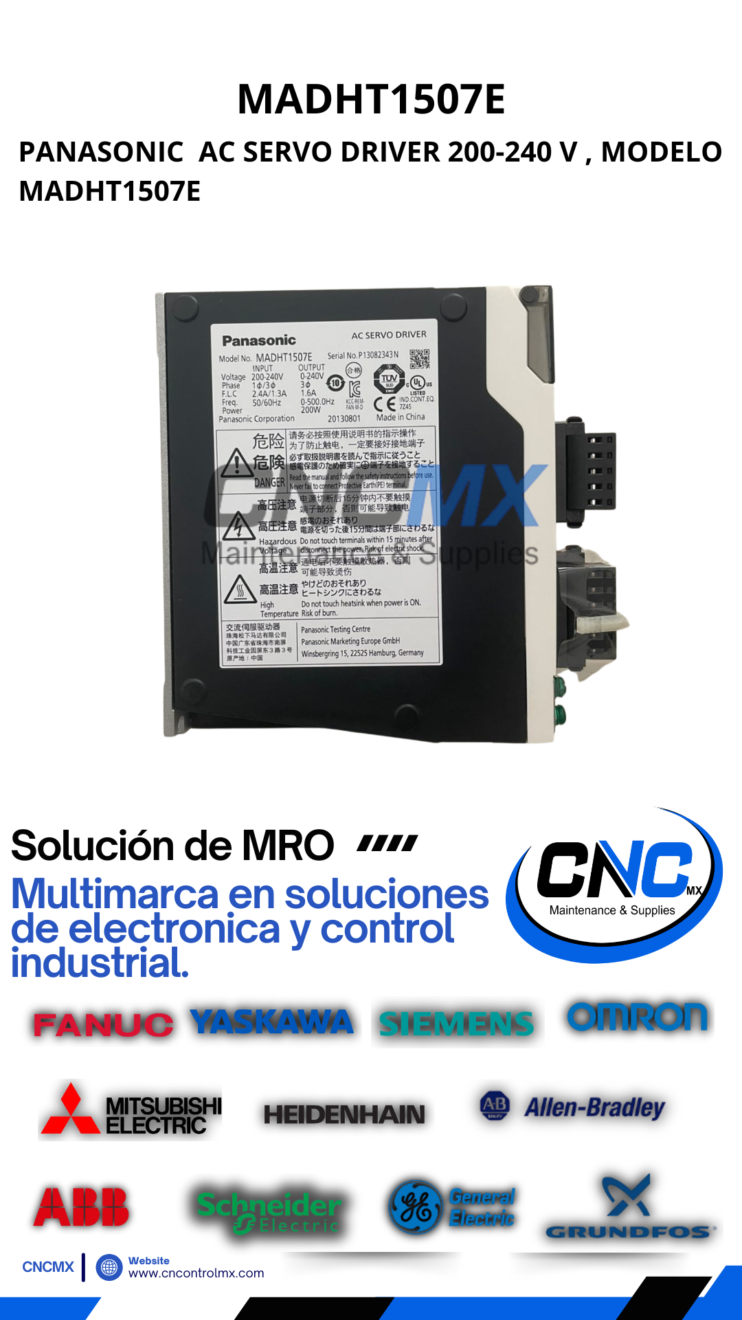 PANASONIC AC SERVO DRIVER 200-240 V , MODELO MADHT1507E